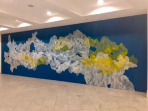 Em Psychographie (2023), há linhas de um texto descontrolado e, abaixo da tela, repousa uma pedra. Aqui, a artista dialoga com as preocupações atuais em relação ao futuro do planeta e à proteção da natureza. A obra parece indicar que a pedra está morta e que ela é também um ser convocado em uma sessão espírita. Como escutá-la? Que médium poderá nos trazer a mensagem da pedra morta? Entre tantas outras questões que a obra mobiliza, a artista imagina futuros e aponta para possíveis novas formas de mediunidade, incluindo a natureza como um ser que também devemos convocar para a mesa.