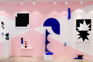 Em boa parte das pinturas, há uma combinação de triângulos e círculos. Por vezes, estão próximos ou se tocam, como em Madame Blavatsky (2022). Em outras, estão distantes, como em Mercúrio (2023). Já na obra Séance (2023), estão integrados. Nesta, um círculo é formado por vários pequenos triângulos. Com um olhar atento, encontramos uma abertura em um ponto do círculo. Ou seja, ele não é um totalmente fechado. Trata-se de um contraste entre formas regulares e simétricas, que terminam por compor um conjunto poroso. O título da obra faz referência a sessões de espiritismo, nas quais um grupo de pessoas estimula espíritos a se manifestarem por meio de objetos ou do corpo de um dos vivos, entrando em seu círculo.